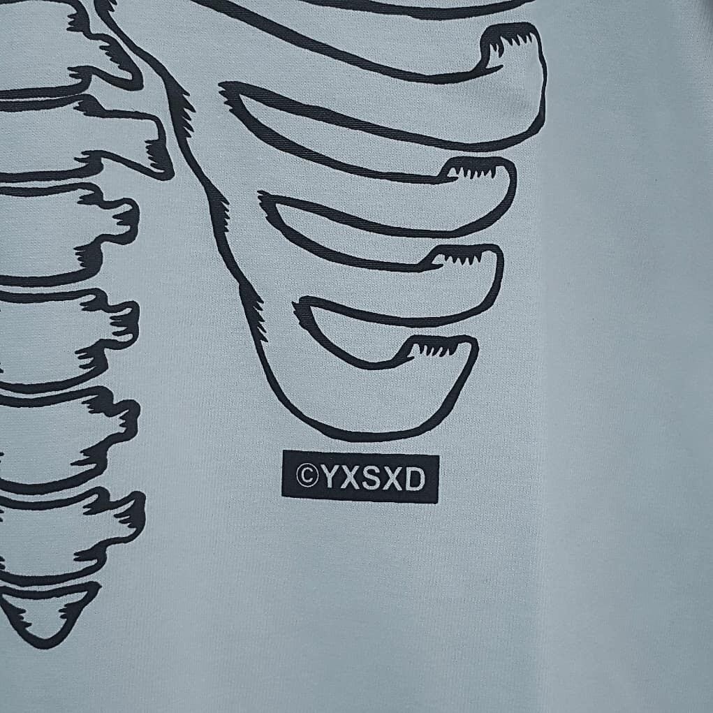 90年代のアメリカのバンドTにあったようなチープなデザインを、新たに和とも洋とも取れる墨筆でど渋な線画に描き下ろしたボーンズTシャツです。白か黒よりお選び下さい。