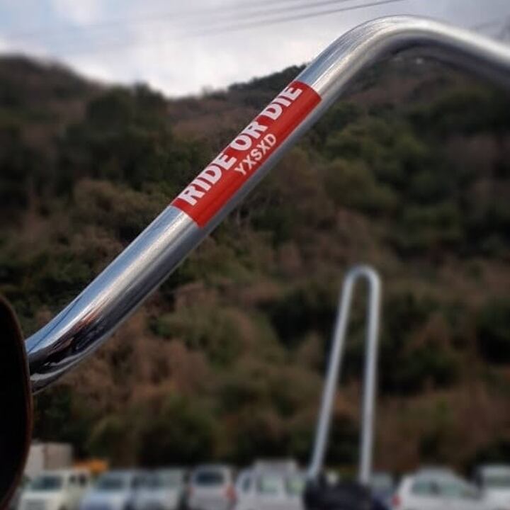 我々バイカーにとっては、直訳すれば"乗るか死ぬか"そのままの意味ですが、西海岸のスラングでは、"お前に何かあれば駆け付ける!"といった意味があります。この熱いメッセージと共に人生という波にRIDE OR DIE!しかないです。ちなみに赤い小物は1つ身に付けておけば運気UPです。by YXSXD