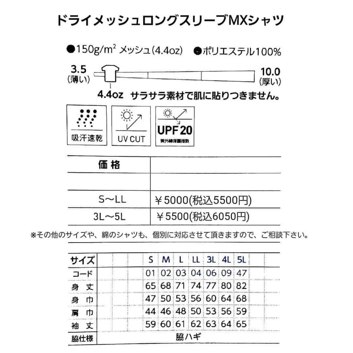 3L〜5L サイズ HARDY-VMXドライシャツ