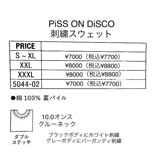 PiSS ON 刺繍 SWEAT (グレー)XXL〜XXXL
